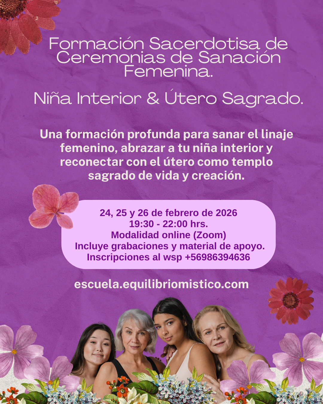 Esta formación es una iniciación sagrada, un viaje profundo de sanación personal y aprendizaje espiritual para acompañar a otras mujeres desde el amor y la contención.